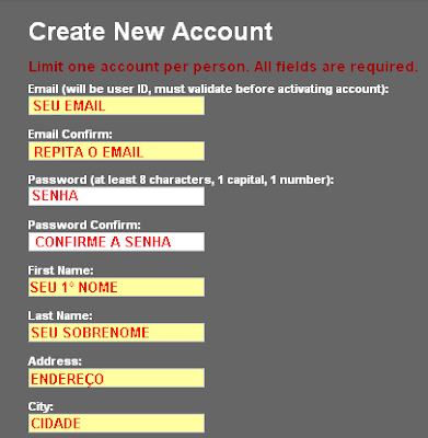 Preencha os campos como mostrado. Importante: a senha deve ter obrigatoriamente uma letra maiúscula e um número.