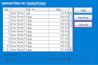 Quando terminar de carregar aparecerá esta listagem com todos os arquivos existentes na pasta. Clique um "Upload".