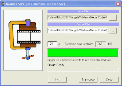 Apague os 100% e escreva o valor desejado de compressão. Clique em "Transcode". Agora é só aguardar. Quando o processo termina, essa janela fecha automaticamente.